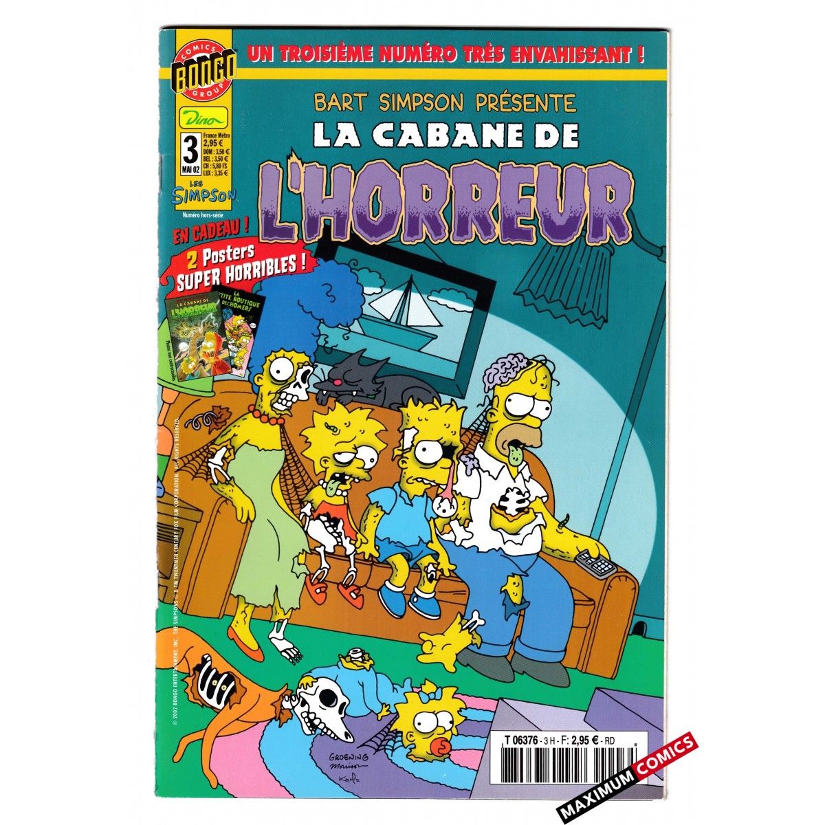 Bart Simpson Présente La Cabane de L' Horreur (Magazine) N° 3 + Poster Attaché paru chez Dino en Français en Très Bon Etat - Comics Bongo